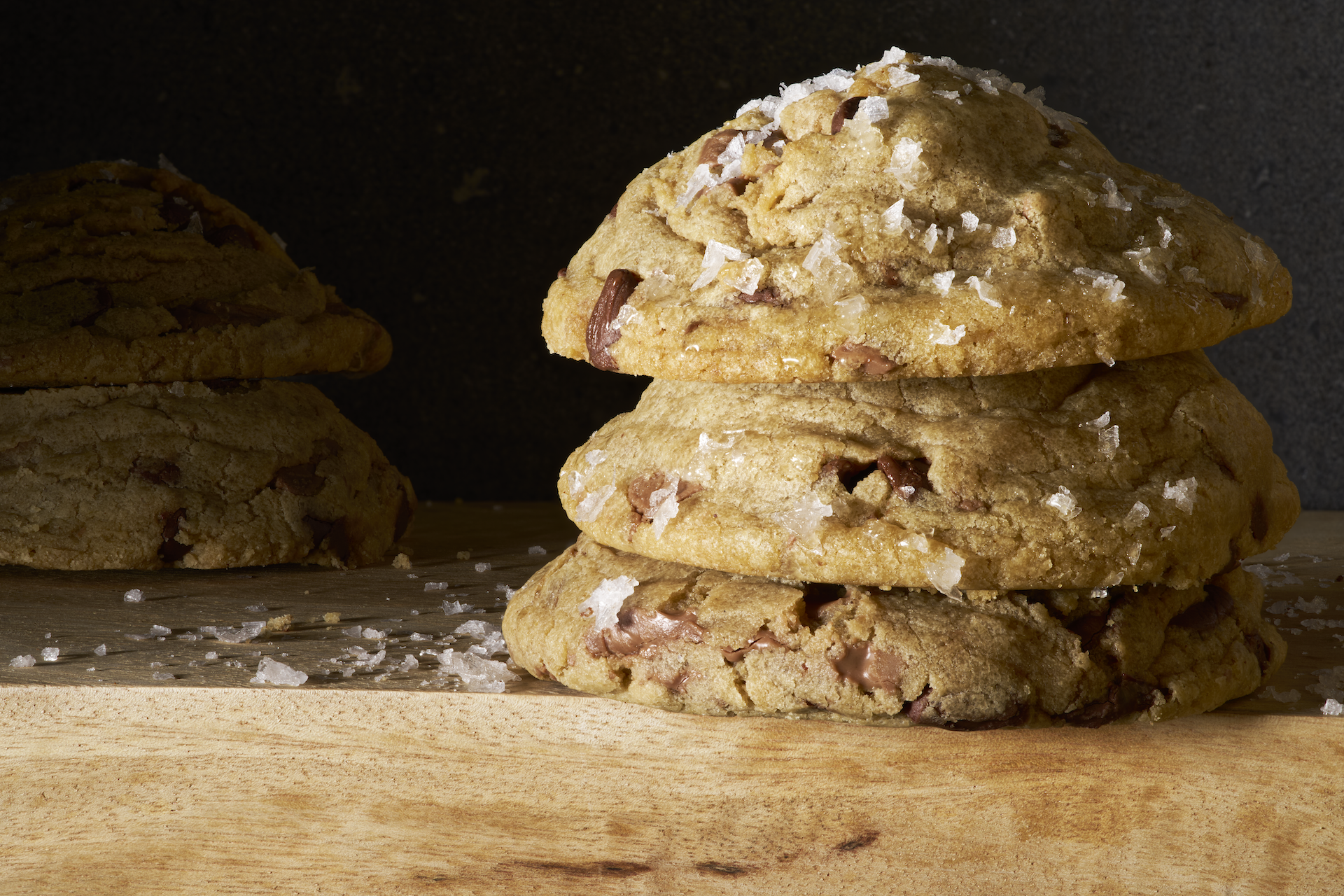 Our most popular cookie and for a good reason! This rich, buttery cookie has beautiful caramel and toasty toffee notes and is packed with fair trade semi-sweet chocolate chips and hand cut chunks of a delectable Swiss style milk chocolate sourced from a co-op of family owned cacao farms in Ghana. We top it all off with a sprinkle hand ground sea salt which adds that extra touch of cookie perfection
